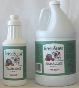 GreenSense Foliar Juice is an excellent fertilizer for your entire landscape. Regular use of GreenSense Foliar Juice will improve the health and appearance of all your landscape and garden plants. Easy to use, GreenSense Foliar Juice has all the ingredients that are recommended for a beautiful garden in one bottle. Ingredients: Manure tea, fish, kelp, apple cider vinegar, molasses, and magnesium sulfate. NPK: 0.2-0.75-1.75 Application rate: For foliar spray, mix 3 tablespoons GreenSense Foliar Juice with 1 gallon of water. Spray on the tops and bottoms of the leaves, and the soil around the plants. Always spray in the morning of the evening. For best results, repeat every one or two weeks during the growing season. For fire ant control, mix one cup GreenSense Foliar Juice, one tablespoon GreenSense Citrus Oil, and one gallon of water. Pour onto mound until the mound it thoroughly soaked.
